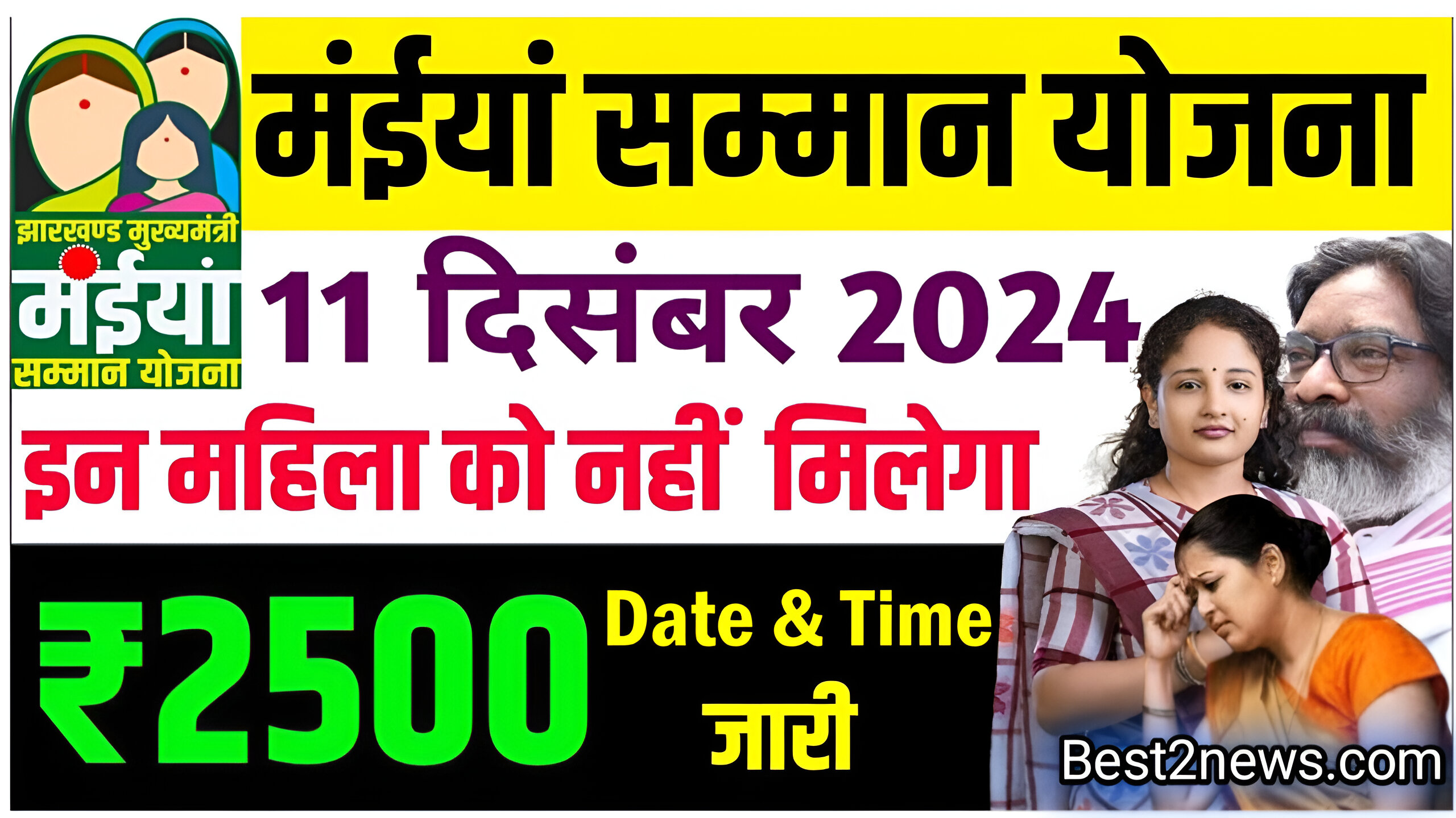 झारखंड मुख्यमंत्री मैया सम्मान योजना झारखंड सरकार मुख्यमंत्री हेमंत शरण ने झारखंड के सभी माता बहनों के लिए लागू किया है और इस योजना के तहत झारखंड के 18 वर्षों से लेकर 50 वर्षों तक के सभी महिलाओं को प्रत्येक महीने ₹1000 की किस्त दी जाती है परंतु इसे अब बढ़कर ₹2500 कर दिया गया है और इस योजना के तहत झारखंड के सभी महिलाओं को अगली किस्त के रूप में ₹25 की राशि दी जाएगी