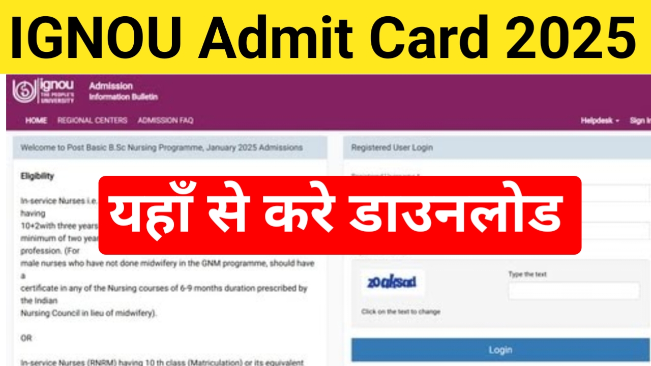 IGNOU Admit Card 2025: इग्नू बीएससी नर्सिंग एवं B.Ed एंट्रेंस परीक्षा के लिए एडमिट कार्ड किया जारी, यहां से करें डाउनलोड
